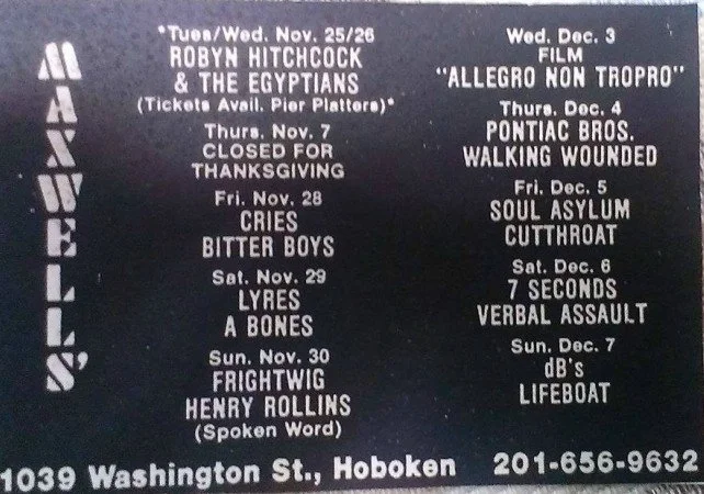 On December 6th, 1986, 7 Seconds played at Maxwell’s! In 1985, the Reno, Nevada-based hardcore outfit released their seminal second LP, Walk Together, Rock Together. About mid-way through the set, lead vocalist Kevin Seconds notes that the band played in Canada the night before with S.N.F.U. at Vita Brevis in Montreal. This show at Maxwell’s was smack in the middle of a long two-month run for the band. They played a series of other NYC-area dates in November, including shows at The Pyramid Club, CBGB’s, The Anthrax Club in Norwalk, CT, and City Gardens in Trenton.